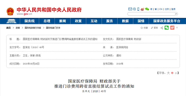通知指出,2020年底前,总结京津冀、长三角、西南五省等先行试点地区可复制可推广的试点经验,依托国家医保局跨省异地就医管理子系统进一步扩大门诊费用跨省直接结算试点范围。