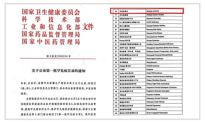 85%的多发性硬化属于复发缓解型,作为一种病程进展性疾病,如果未能得到及时治疗,约50-60%的患者最快5年会进展为继发进展型多发性硬化。患者可能出现无法缓解的行走困难、认知损害、视力损害等症状,严重影响工作和生活。在我国,目前约有3万多名多发性硬化症患者。2018年,多发性硬化被正式收录进我国《第一批罕见病目录》。