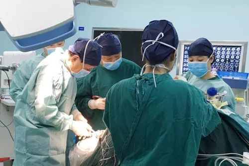 由于手术难度大,时间长,所以此次手术配备了两名器械护士。待麻醉顺利后,沈教授上台进行手术:开骨窗、咬除枕骨、悬吊脑膜、病灶探查、肿瘤切除... 整台手术持续了5个多小时,术中并未输血,足见沈教授精湛的技术水平。