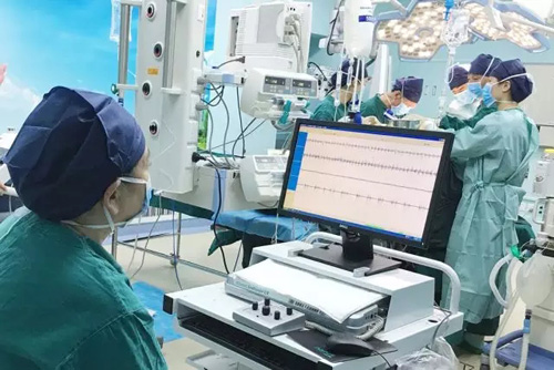 脑电监测主任崔丽华运用肌电诱发电位仪监测患者情况