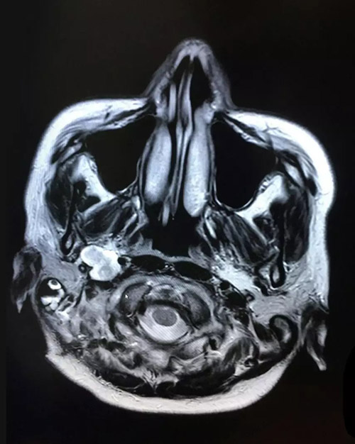 王琴是家中的独生女,从小到大,备受宠爱,身体一直都很健康,她的家族也没有头痛的病史。不过伴随着自己头痛发作越来越严重,在爱人的陪伴下,王琴到医院做了检查,结果让人震惊:这不是普通的头痛,而是颅内右侧桥小脑角占位,考虑有可能是神经鞘瘤。