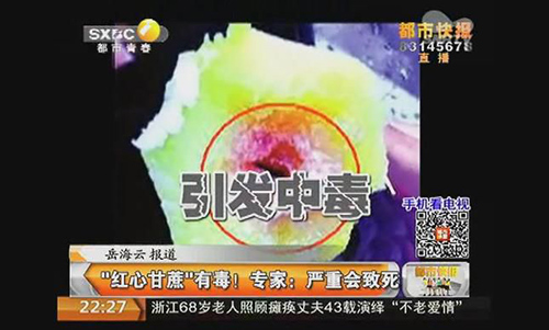 “当时我也没想太多,就把那节甘蔗吃了。当天下午,我就感觉肚子不舒服,浑身发冷,还不停地腹泻。”赵先生介绍,在吃止泻药无效的情况下,他被家人送到医院检查,医生说是因为吃了带红丝的变质甘蔗造成食物中毒。