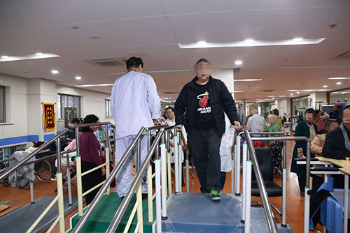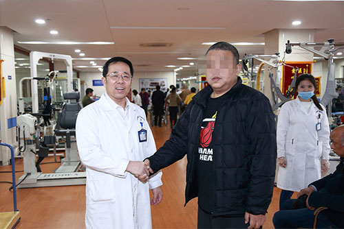 李振并主任为张先生成功实施微创手术后,正在积极接受康复治疗