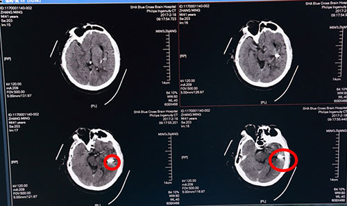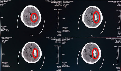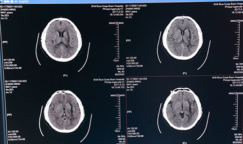 2月11日晚,和平常一样,开完车回来的张先生又与牌友相邀打麻将,10点多,牌趣正兴浓,张先生突然感觉右侧肢体乏力,失去知觉,伴头晕,休息10分钟后未见好转,同伴急忙将张先生就近送往上海某知名医院,途中发现小便失禁,急诊门诊行头颅CT示:左侧基底节区出血,予对症治疗;次日复查头颅CT示:左侧基底节脑出血,较前片(2017.2.11)略有进展,右侧半卵圆中心腔隙灶,诊断:高血压脑出血(左侧基底节)。