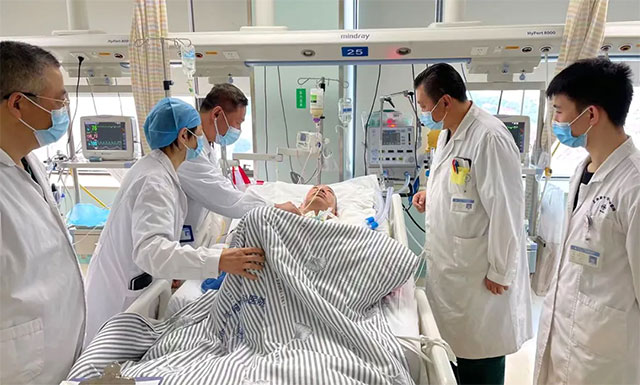 “嘟嘟嘟……”去年12月25日早上9:40,医院9楼神经外科重症监护病房23床的床旁监护仪警示灯闪烁不停,并发出刺耳的警报声。原来,各项生理指标一直很稳定的黄老伯,血氧饱和度突然下降至88%(注:一般人血氧饱和度正常应不低于94%,在94%以下为供氧不足),呼吸急促,心率上升。