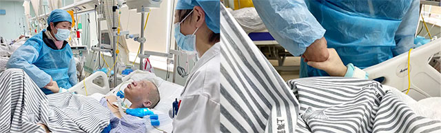 章阿姨的爱人黄老伯(化名)两年前突发脑出血急送当地医院救治。在行头颅内血肿清除及去骨瓣减压手术后,黄老伯的性命算是保住了,但意识状态和动作、言语等功能恢复缓慢,长期卧床。2020年7月底,由于肺部感染严重,转至上海蓝十字脑科医院9楼神经外科重症监护病房。在经过李鲁萍主任团队的精心治疗后,症状得到了控制,病情趋于稳定。