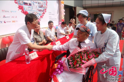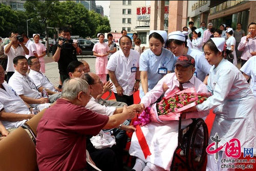 2015年我院医护人员欢送郑昌根康复回家(图片来自中国网)