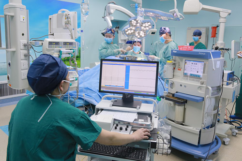 术中,脑电监测崔丽华主任对患者进行电生理监测