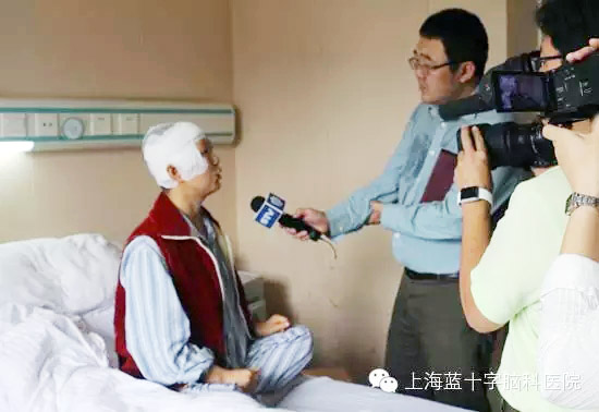 沈海娣接受上海电视台记者采访,表示是人间大爱延续了自己的生命