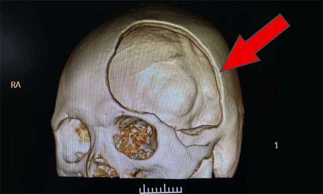 ▲ 患者颅骨缺损严重:大小约11.5cm×12cm