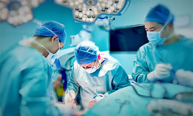 ▲ 吴治群博士,顺利为患者进行颅骨修补术(左二)