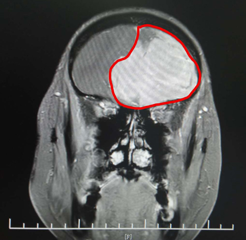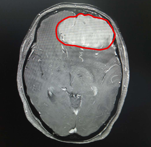 头颅MRI影像清晰显示了巨大的脑膜瘤