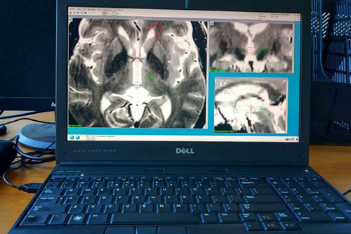 立体定向神经外科手术(简称脑立体定向术),在患者头部安装立体定向仪,行核磁检查,应用计算机技术及其软件,把影像学资料传输至手术计划系统,进行图像的三维重建,可直观显示大脑的解剖结构,计算出手术靶点的精准坐标值,再输入立体定向仪后进行精准手术。同时可设计手术穿刺路径,计算病变大小和范围,使手术个体化,到达更精准、更安全、更有效、直观、省时、创伤小的目的。目前在世界范围应用日益广泛,分为二大类:1、脑深部核团电刺激术或叫脑起博器(DBS)术。2,脑深部核团切开术。