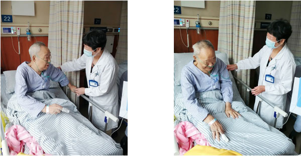 经过9楼ICU李鲁萍医疗团队两个月的精心治疗,5月25日,竺老病情稳定送回功能神经内科3A病区普通病房,戴秀珍医疗团队及护工把他当亲人般精心照顾,竺老面色开始红润起来,说话也越来越清晰了。