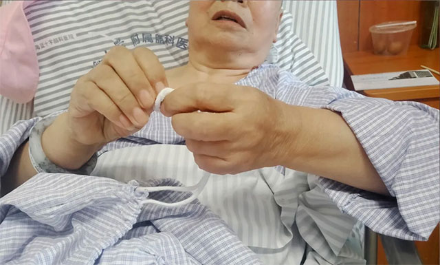 ▲ 术后许阿姨能自己穿绳打结了