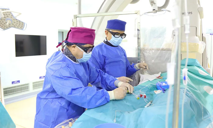 ▲ 席刚明教授、王贵平博士在为患者手术