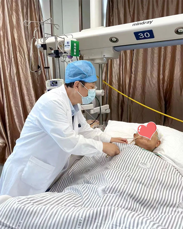 刚转到蓝十字时,黄老伯已意识不清、失明,时而嗜睡,时而躁动不安,查体也不配合。由于病情不乐观,被送至神经外科重症监护病房对症治疗,并持续监测血压、血氧饱和度。