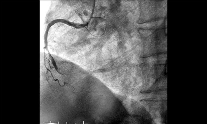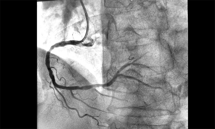 ▲ 术前,前降支、回旋支、右冠状动脉严重狭窄及完全闭塞