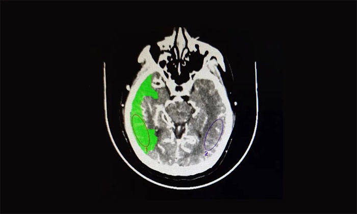▲ 头颅CTP:右侧大脑半球脑组织灌注不足