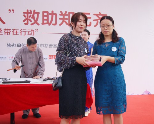 9月12日,市人大代表柏万青通过报道看到郑元齐在上海蓝十字脑科医院治疗的消息,第一时间到医院病房探望了郑元齐老师,“社会要特别感谢这些为电大教育默默付出的老师,遇到车祸很不幸,对一个家庭是灭顶之灾,大家的救助会使郑老师快点好起来。”活动当日,柏阿姨匆匆地赶来了,代表上海市慈善基金会静安区分会捐款20000元。她动情地说:“今天,我作为电大校友代表,感谢蓝十字脑科医院用精湛的技术救助好老师郑元齐;感谢郑老师,我和爱人都是电大的,我爱人也是老师,我知道他们的不容易,我给郑老师加油,也给他的家属鼓励与信心。上海是一座海纳百川的城市,蓝十字脑科医院没有放弃,上海也不会放弃,希望大家都来献爱心。”