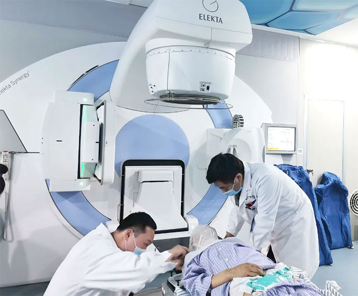 在取得患者及家属签字同意后,完善了各项常规检验检查,排除了放射治疗禁忌症,王晓东主任团队为患者仔细勾画了肿瘤靶区,物理师精心设计了放射治疗方案。