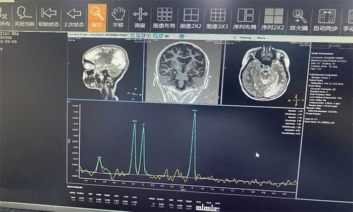 入院后的琪琪,接受了24小时长程脑电图监测,并在癫痫癫痫发作时,捕捉到了清晰的异常脑电图。MRI(磁共振成像)也提示左侧大脑半球信号异常。结合之前一系列检查的结果,杨博士认为,患者为典型颞叶癫痫,病灶可能位于左侧颞叶及海马杏仁核区。针对该区域行磁共振波谱检查提示,左侧海马靠近尾端NAA/(Cr+Cho)的比值明显降低,进一步明确致痫灶位于颞前叶及海马杏仁核区。