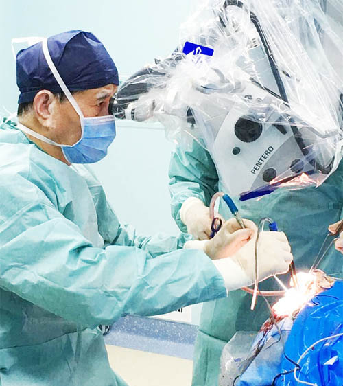 手术过程中,技艺精湛的沈建康教授借助医院先进的神经外科导航系统,快速准确地锁定病变灶,在显微镜下耐心地将肿瘤一点一点地尽可能进行切除,历时两个小时后,手术取得成功。