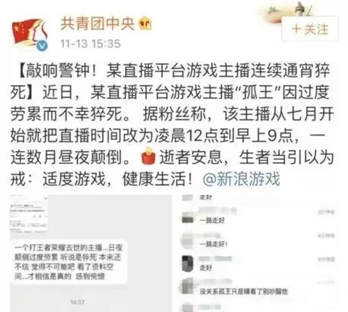 ▲某游戏主播连续通宵猝死