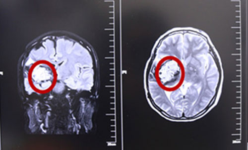 术前MRI影像资料,红圈内白色部分为肿瘤物