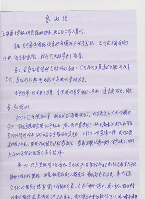 首先,万分感谢贵院领导的前瞻性及忧患意识,及时在上海开设了这样一所专科医院,给我们夫妇带来了福音。