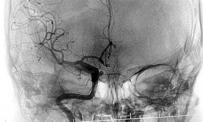 ▲ DSA检查提示,右颈内动脉眼动脉段动脉瘤