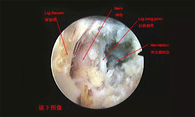 医生通过皮肤表面不到1厘米的创口,建立导管通道,将椎间孔镜导入到患处靶点区域,在内窥镜放大监视下,可以清楚地看清解剖结构,既避开神经血管,又能直接摘除突出的髓核,达到神经根管减压的目的。